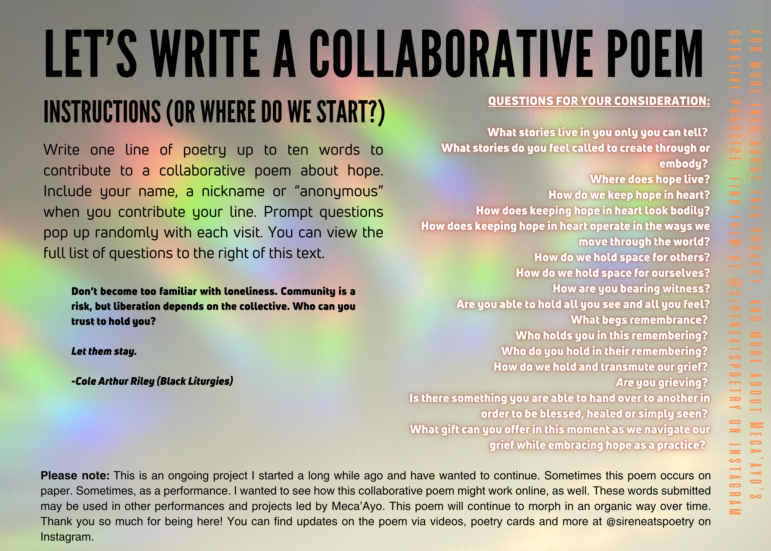 You have found a collaborative poem about navigating grief while moving through the world with hope as a practice, as a light, as a guiding force.